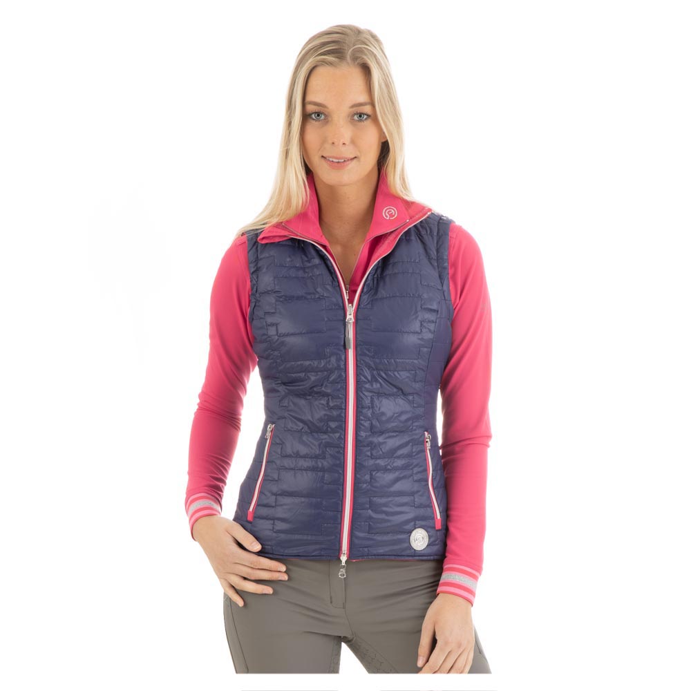 One item, two ways to wear it! These reversible pieces offer two different looks: sporty with a stepping artwork at the inside and elegant with shiny details at the outside. The lightweight, breathable items feature a two-way zipper and pockets on both the inside and the outside.